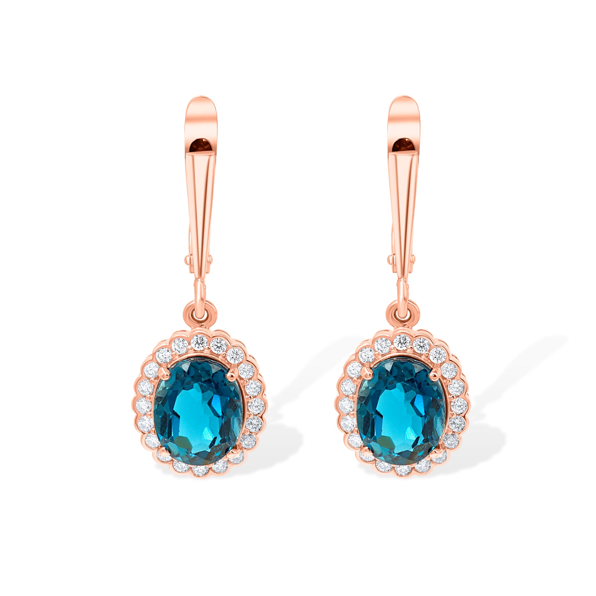 Šie 585 raudono aukso auskarai, sveriantys apie 5.82 g, yra prabangos ir išskirtinio stiliaus akcentas. Kiekvieną auskarą puošia vienas iš dviejų stulbinančių brangakmenių: