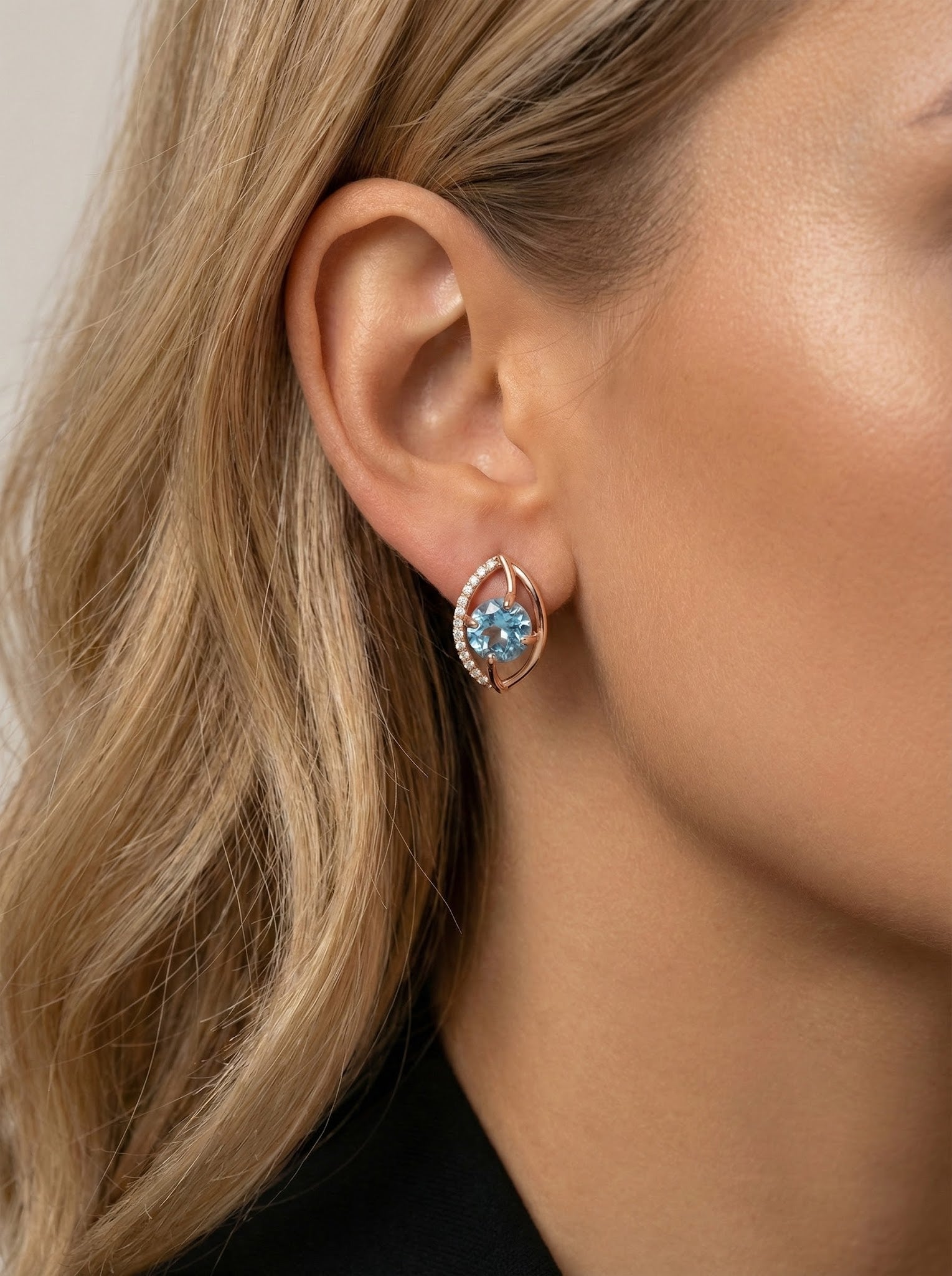 Auksiniai auskarai su topazu ir cirkoniais TUA0012