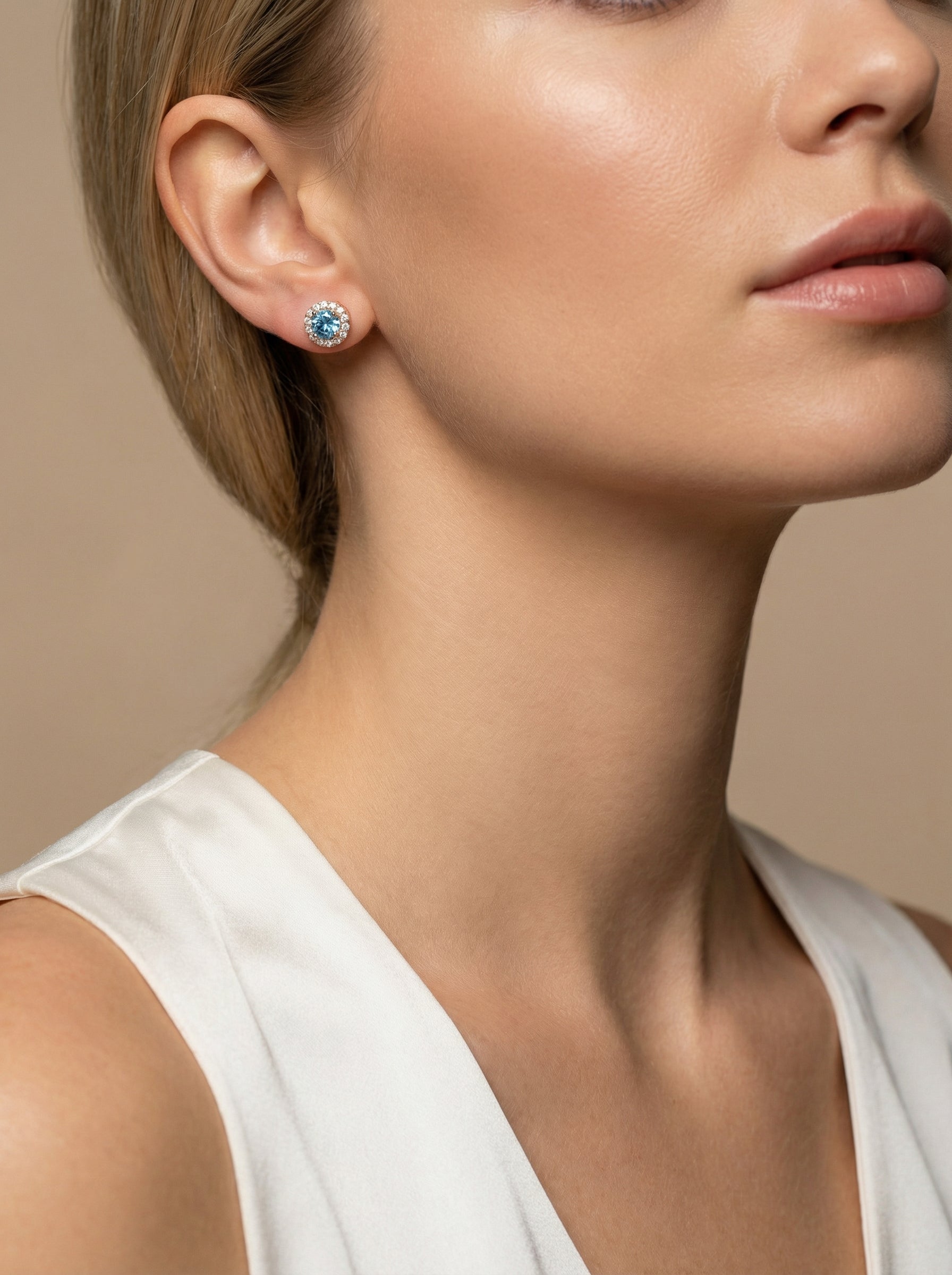 Aplink pagrindinį akmenį subtiliai išdėstyti balti cirkoniai, kurie prideda papildomo švytėjimo ir elegancijos, išryškindami kiekvieno akmens unikalumą ir grožį.