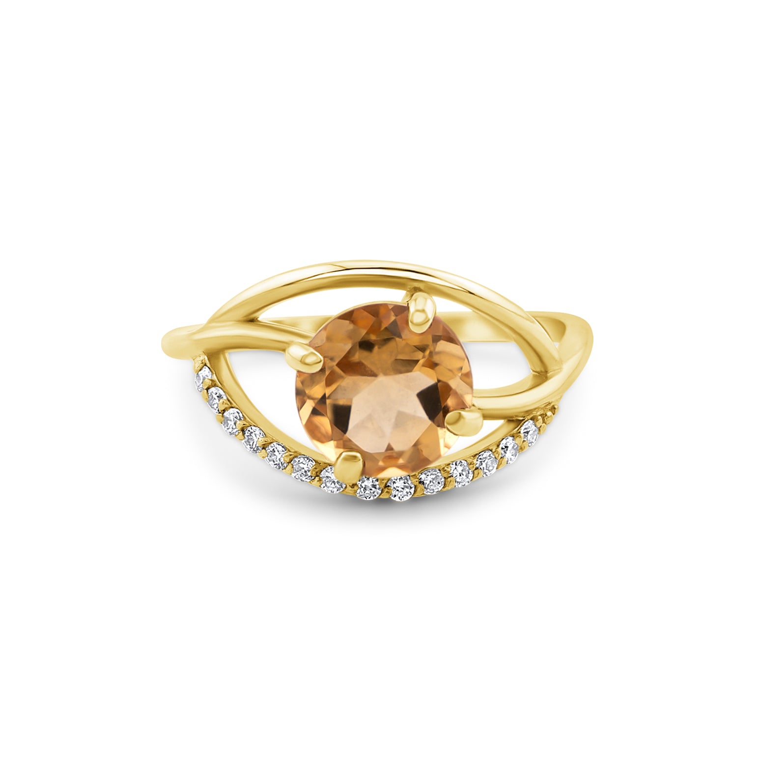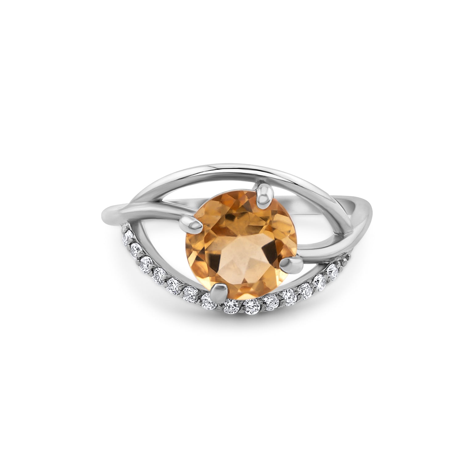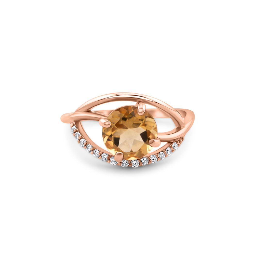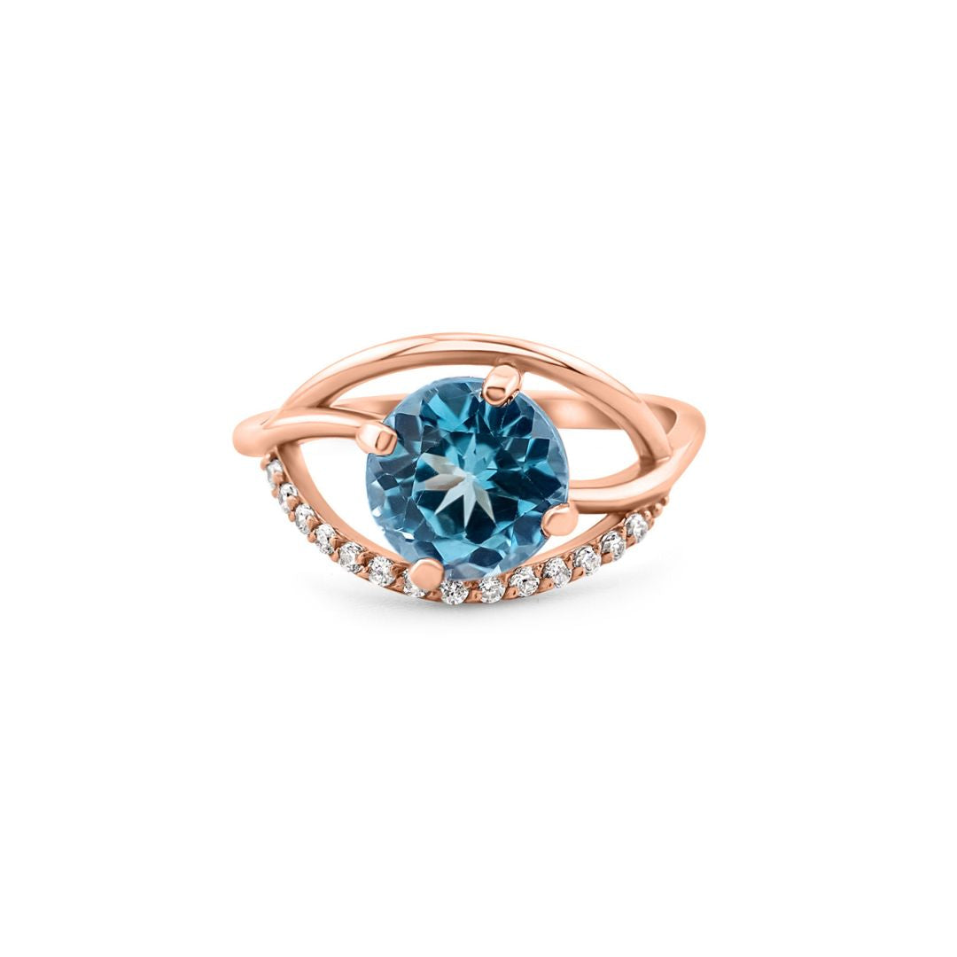 - Akmuo: Mėlynasis topazas/Geltonasis citrinas/Dūminis kvarcas; šalia akmens iš šonų balti cirkoniai;