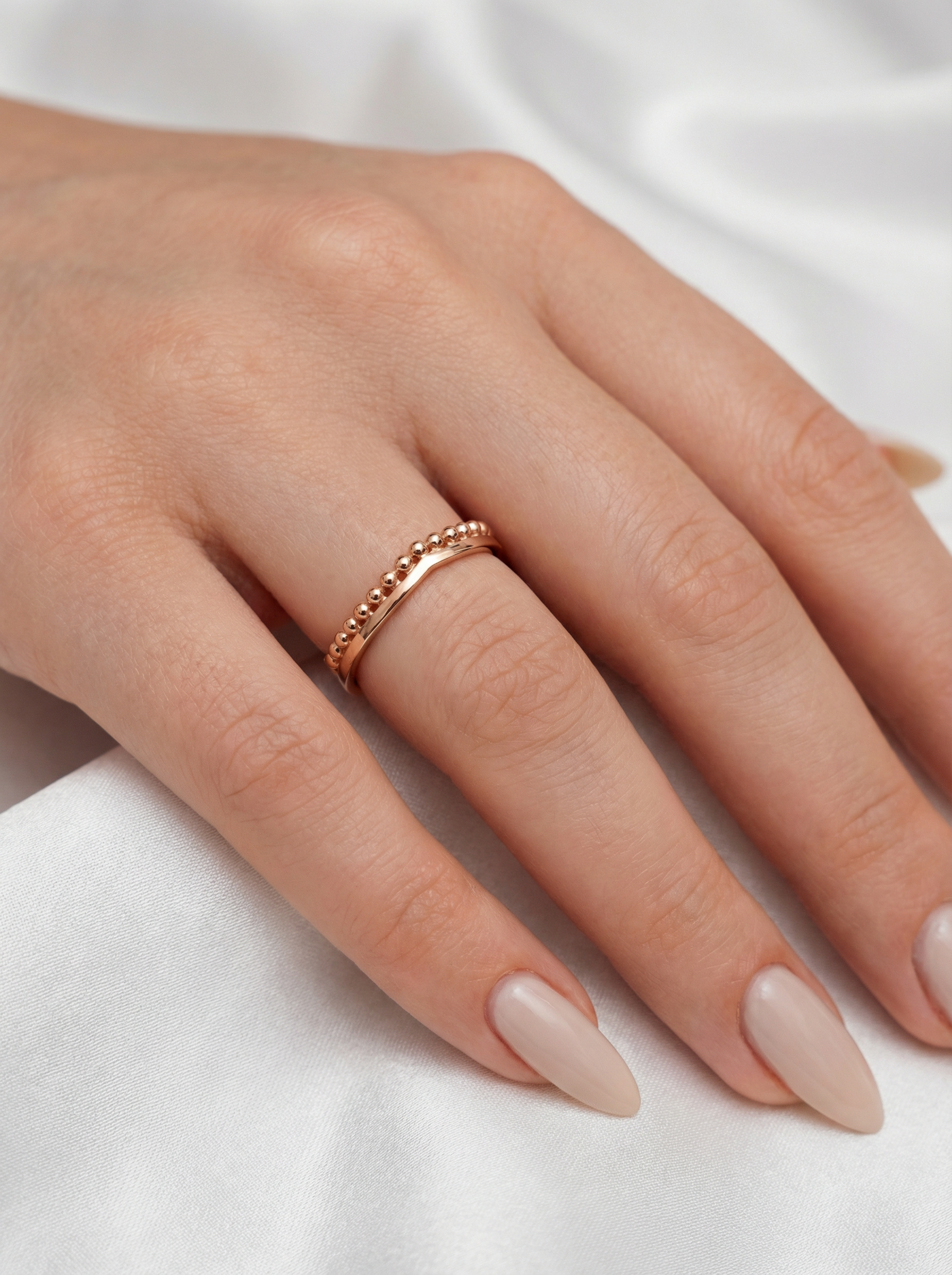 Auksinis V formos žiedas su karoliukų dekoru PMZ147