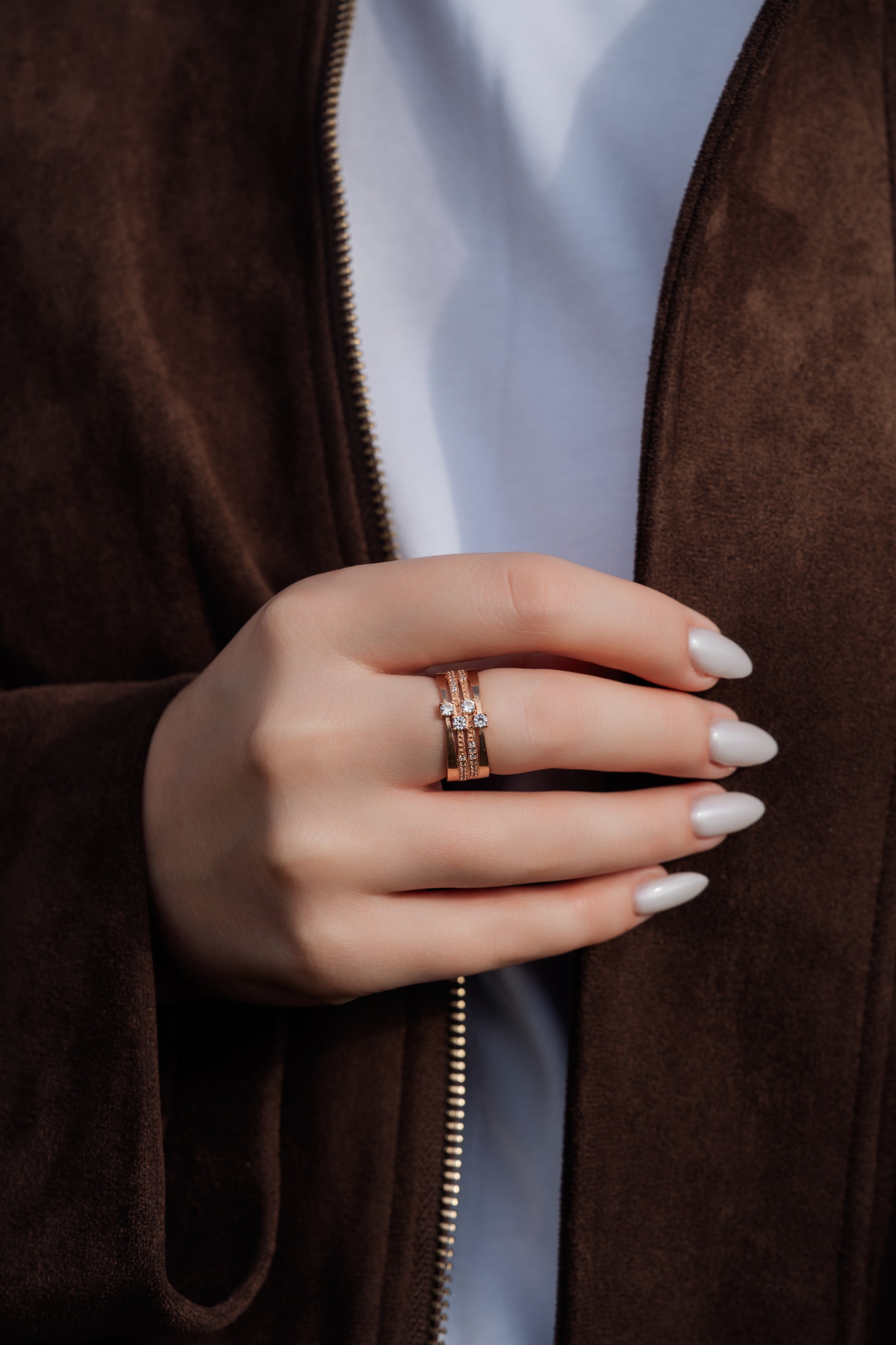 - Akmenys: balti cirkoniai;
