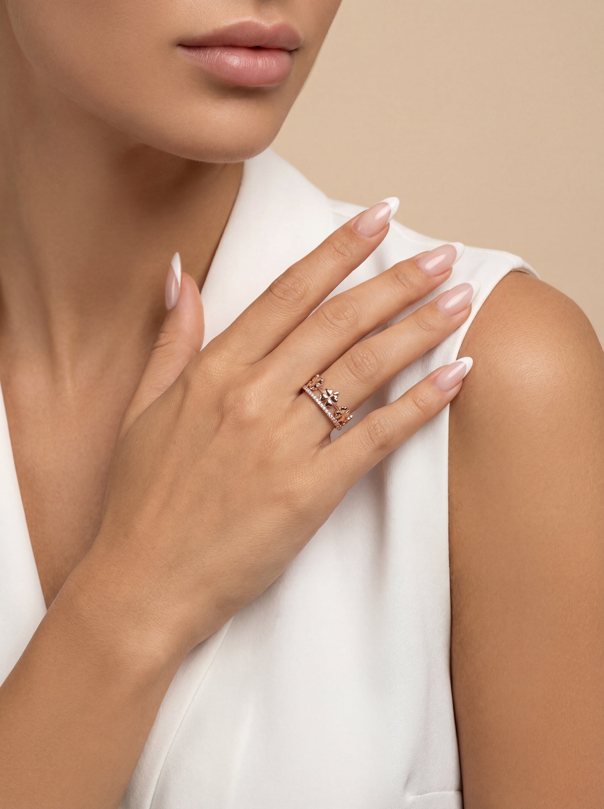- Akmenys: balti cirkoniai;