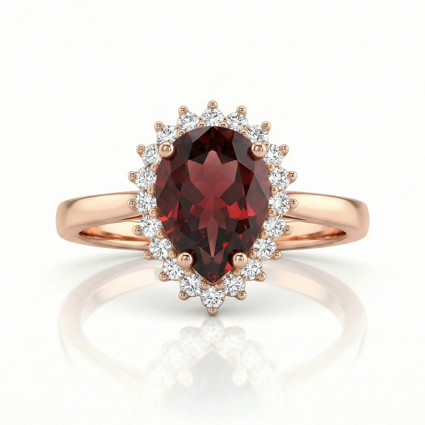 - Akmenys: Raudonasis granatas, aplink akmenį balti cirkoniai.