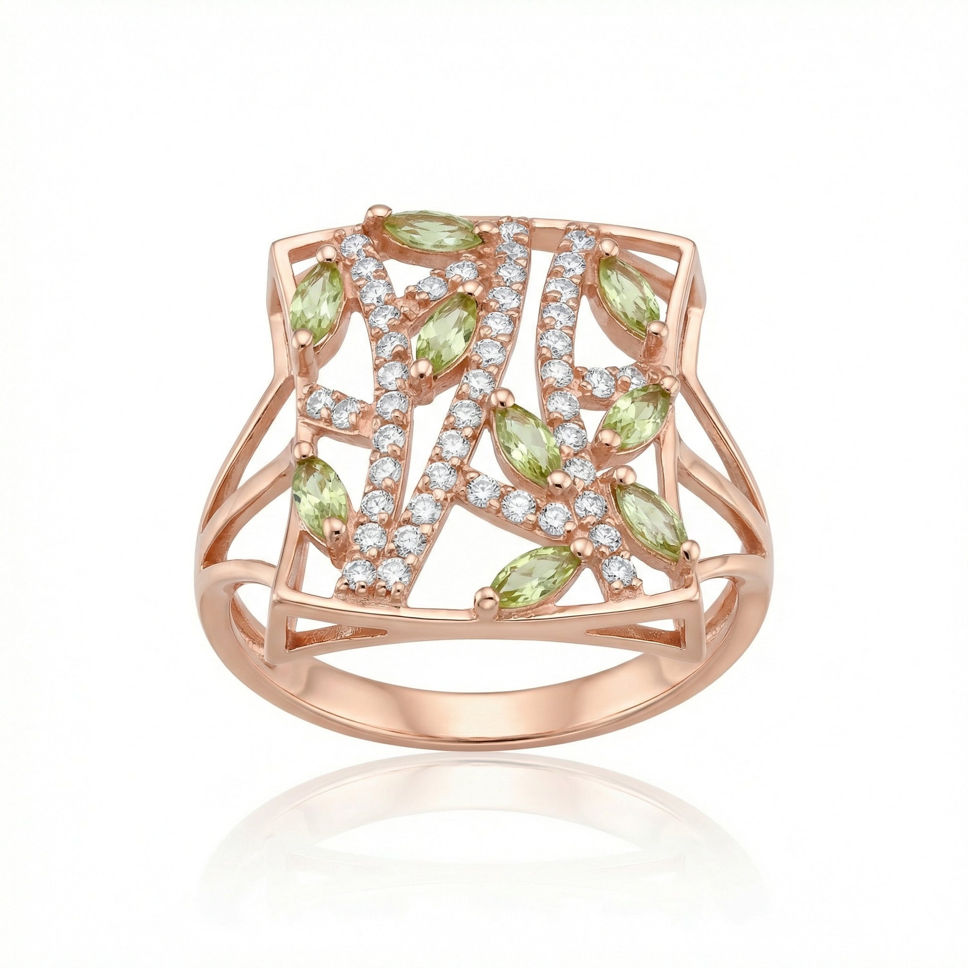 - Akmenys: peridotas ir baltieji cirkoniai;