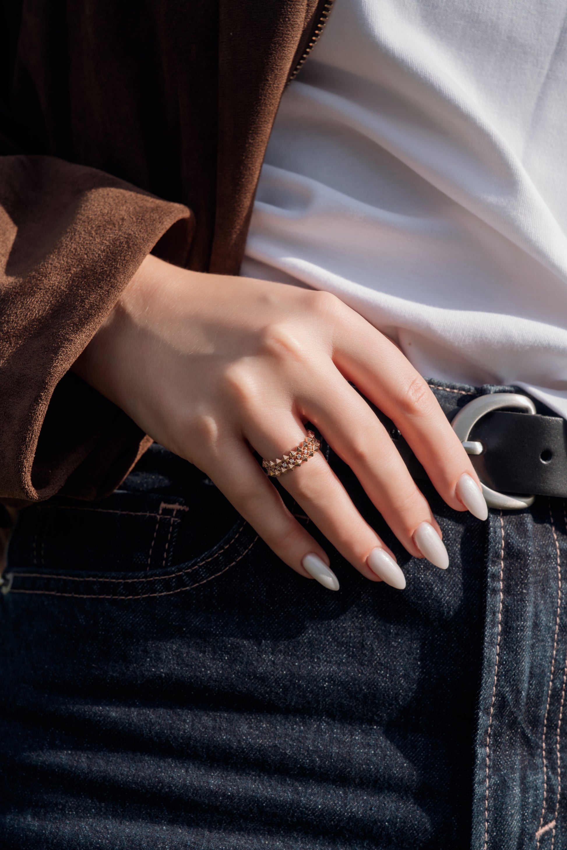 Auksinis žiedas su piramidės formos elementais DMZ161