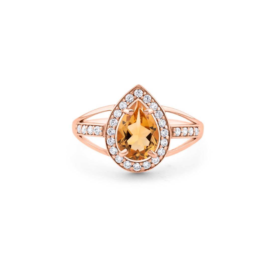 - Žiedo akcentas yra apvalus natūralus akmuo, kuri galite pasirinkti pagal savo stilių: Geltonasis citrinas/Raudonasis granatas; aplink akmenį balti cirkoniai.
