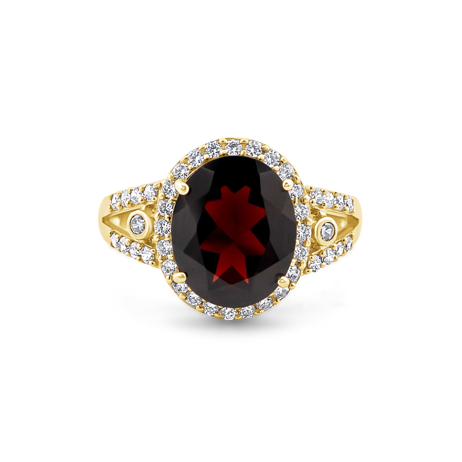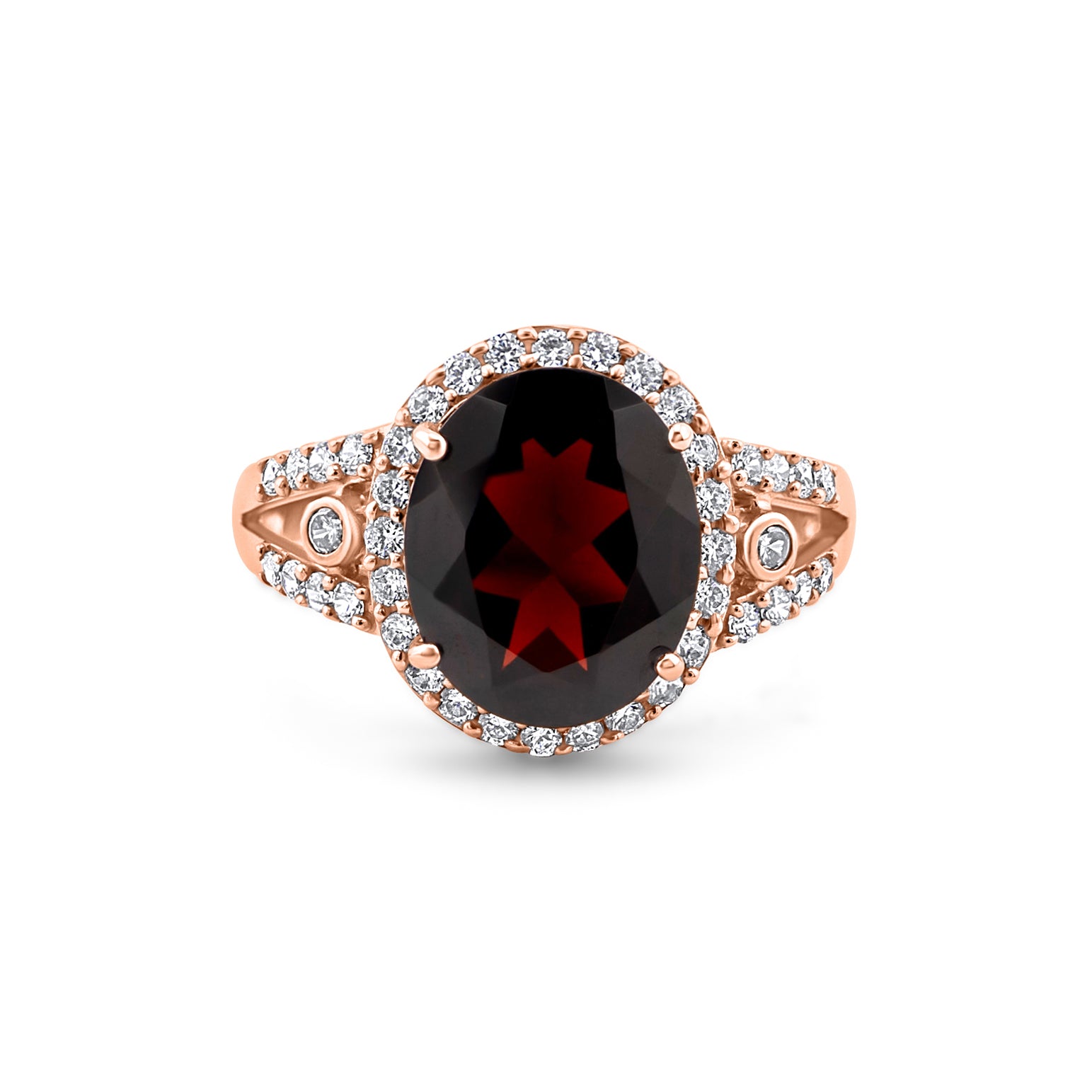Raudonasis granatas – energijos ir aistros akmuo, įnešantis į žiedą šilumos ir gyvybingumo.