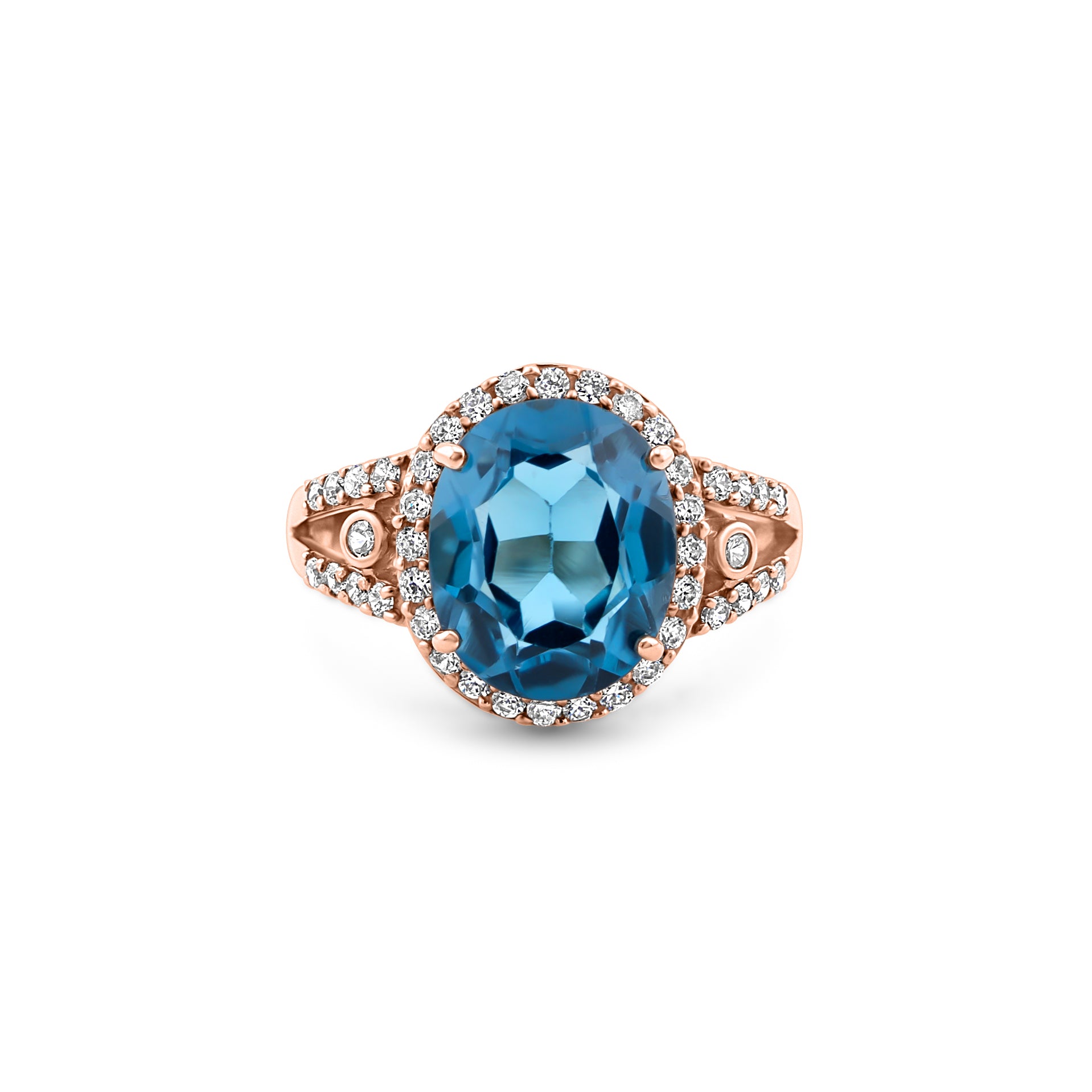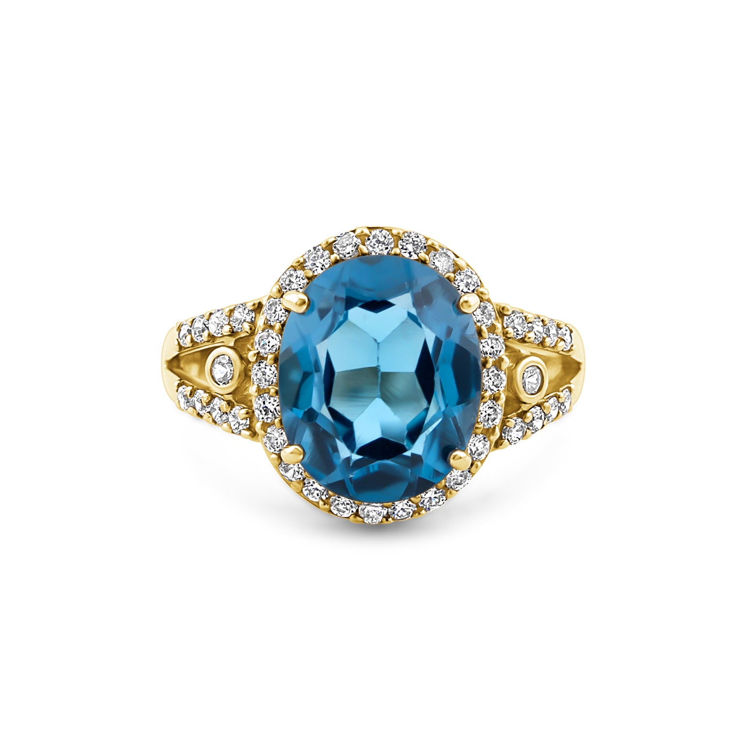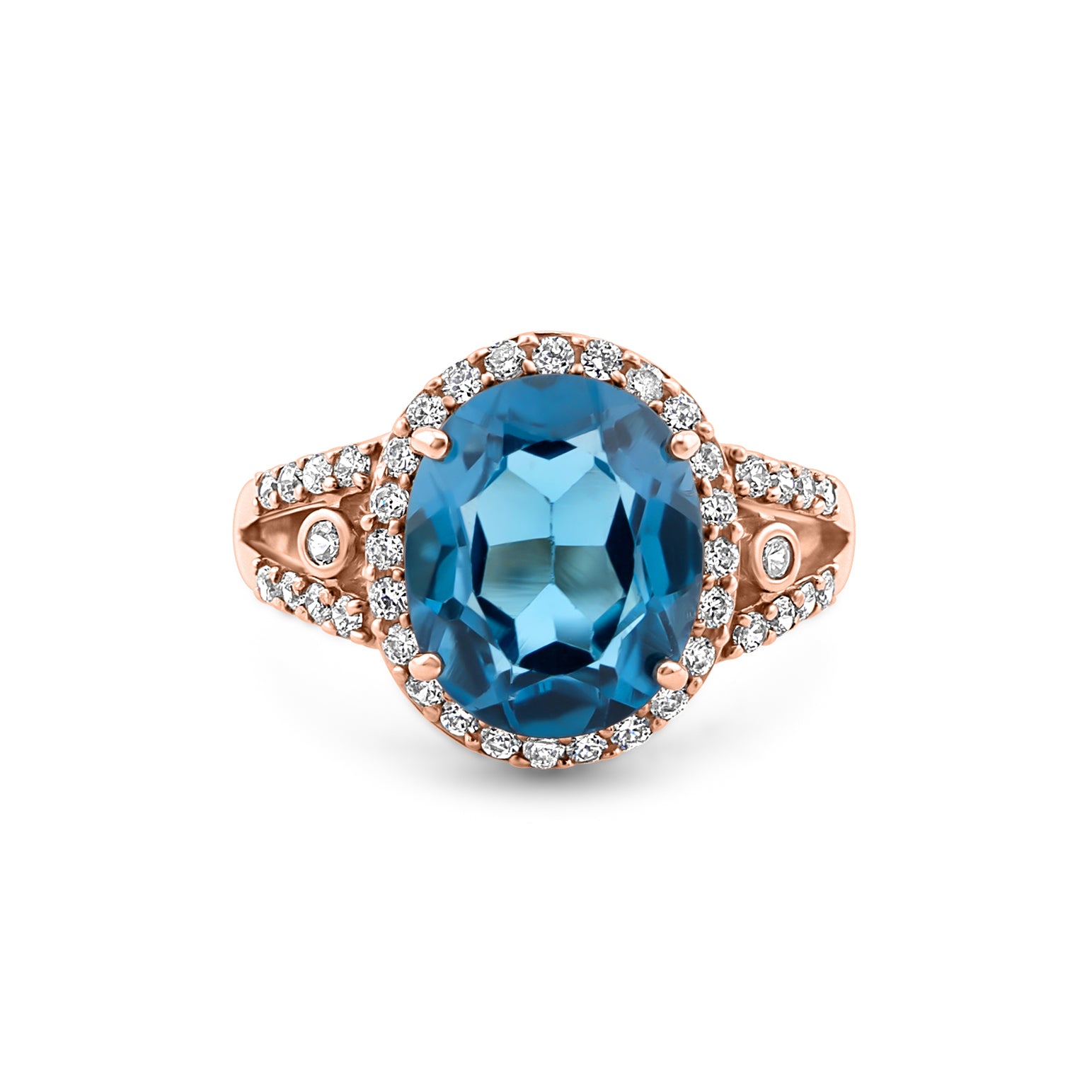 Mėlynasis topazas – ramybės ir įkvėpimo akmuo, suteikiantis žiedui subtilaus švytėjimo.