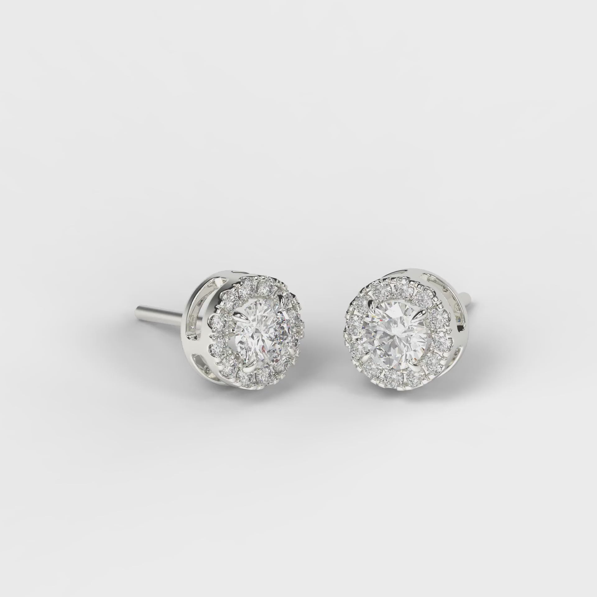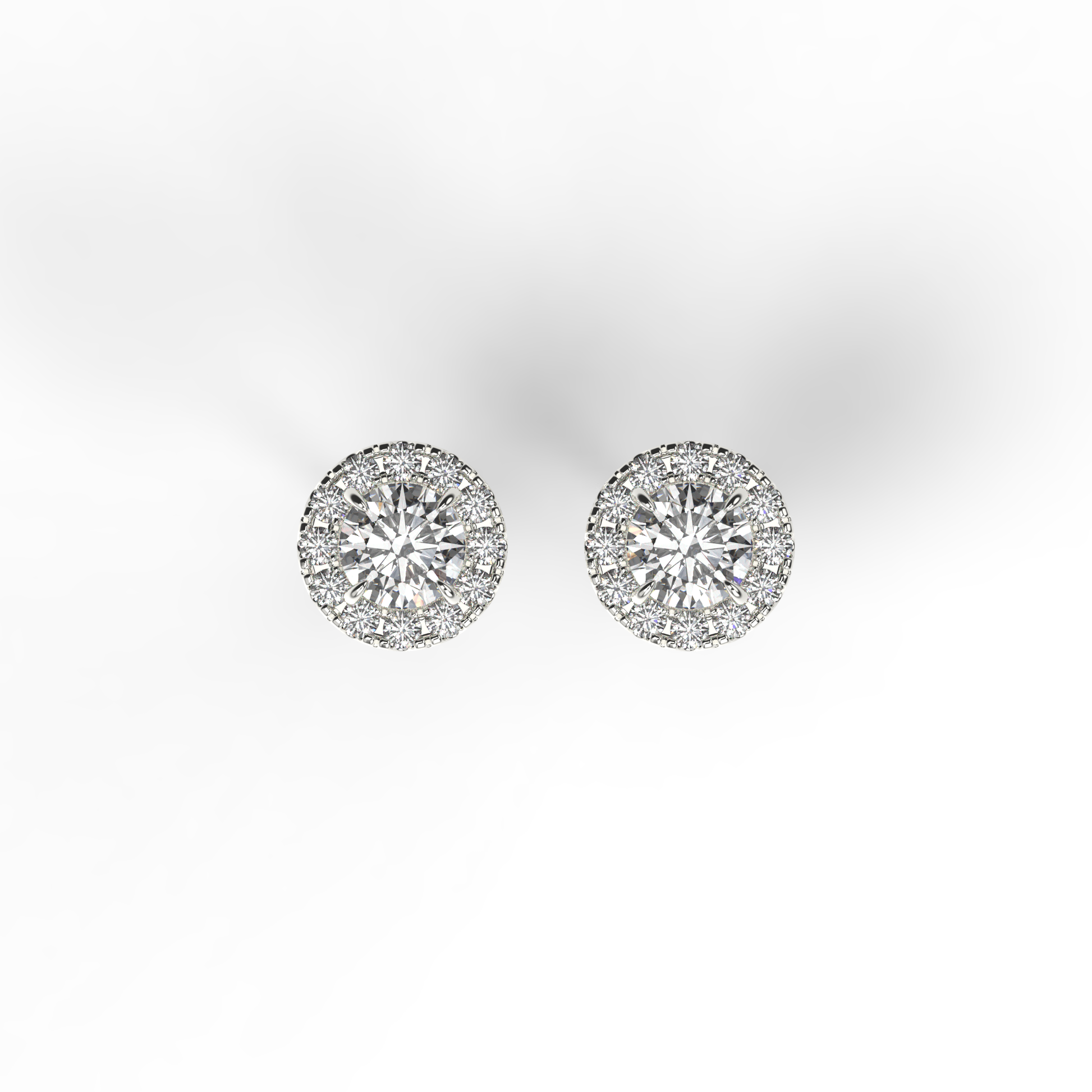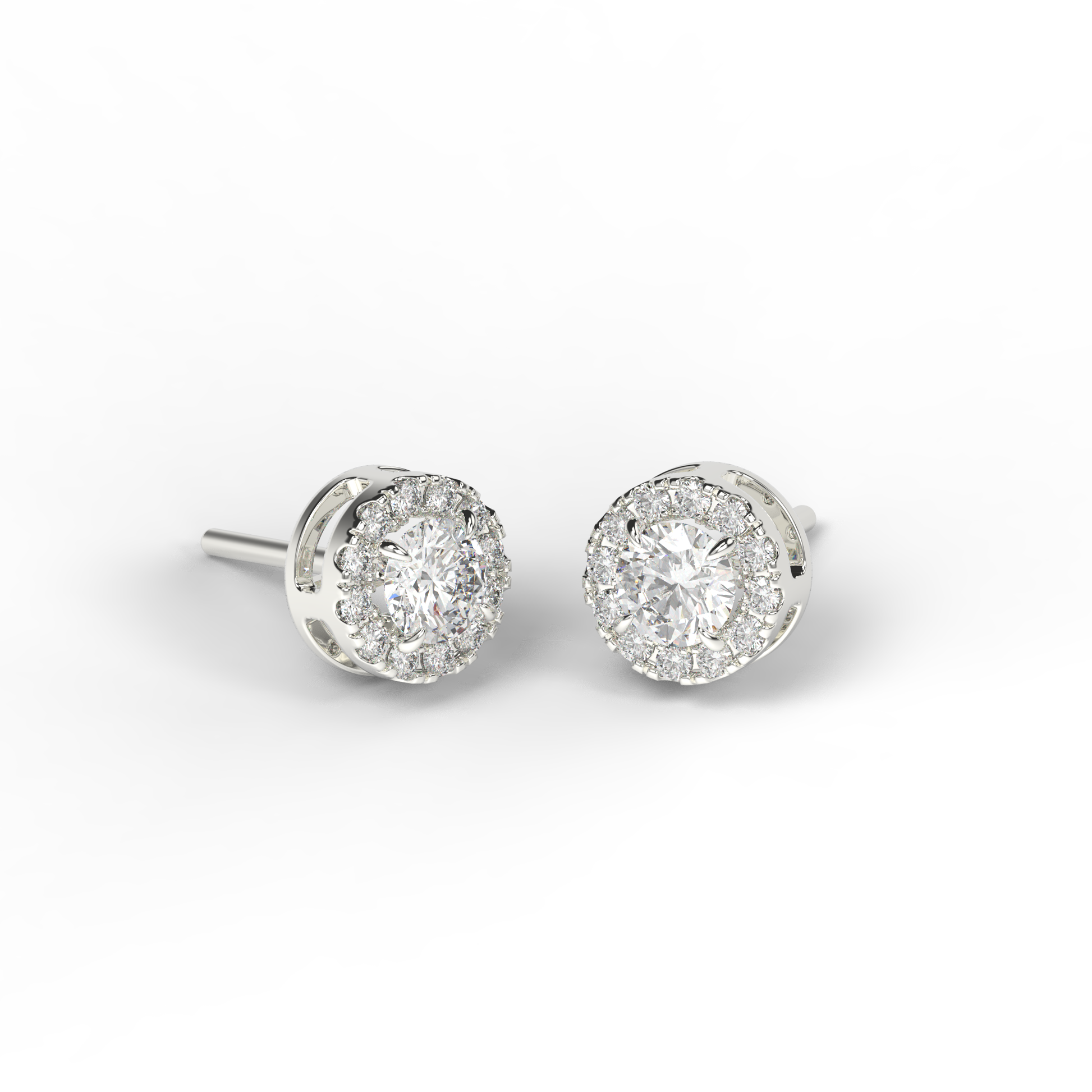 Balto aukso "Halo" auskarai su laboratoriniais deimantais