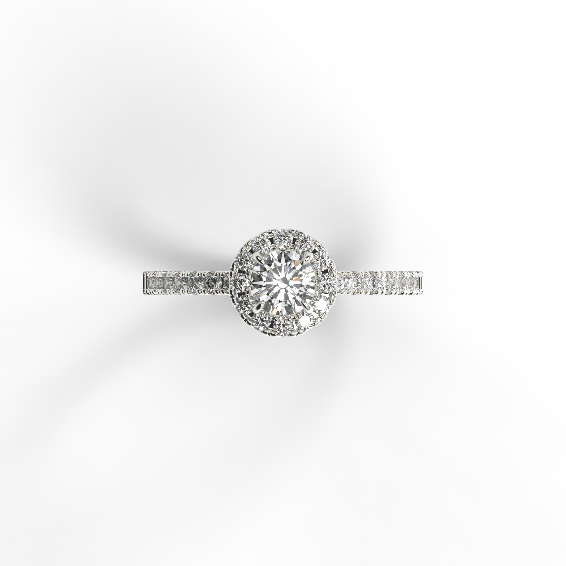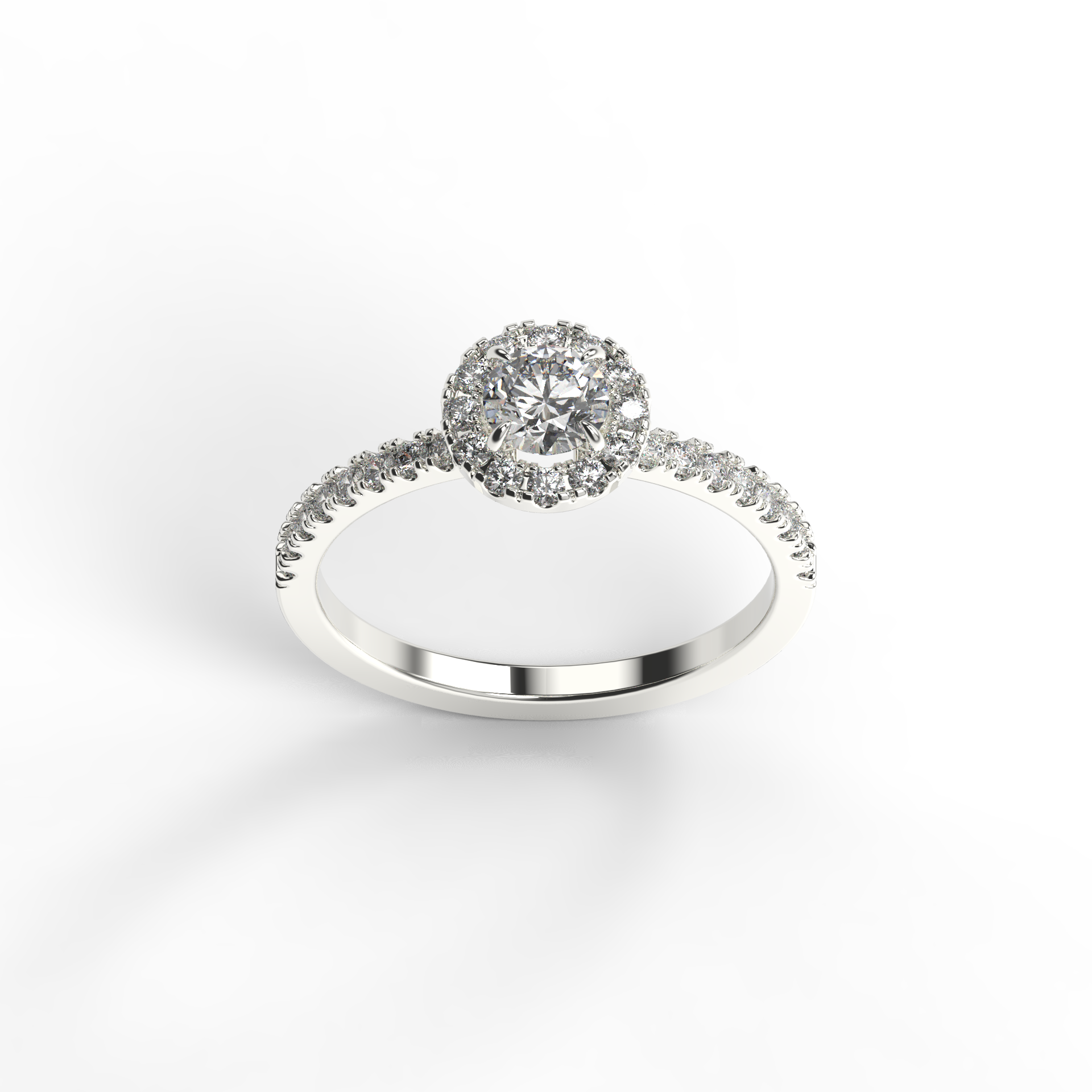Balto aukso "Halo" žiedas su laboratoriniais deimantais