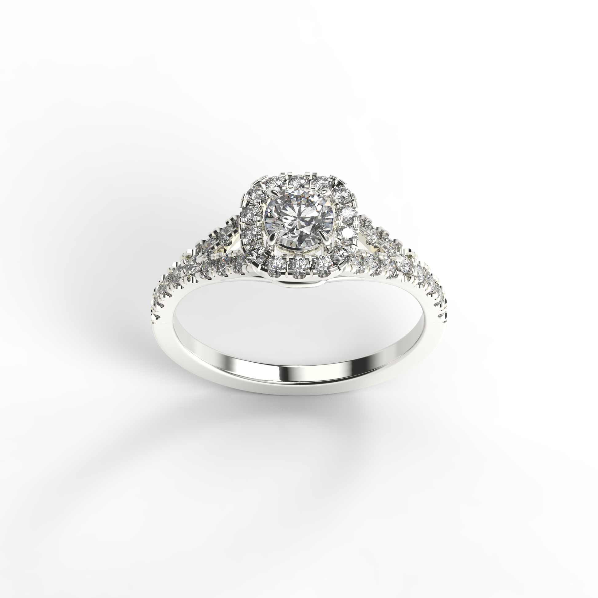 Balto aukso "Halo" žiedas su laboratoriniais deimantais
