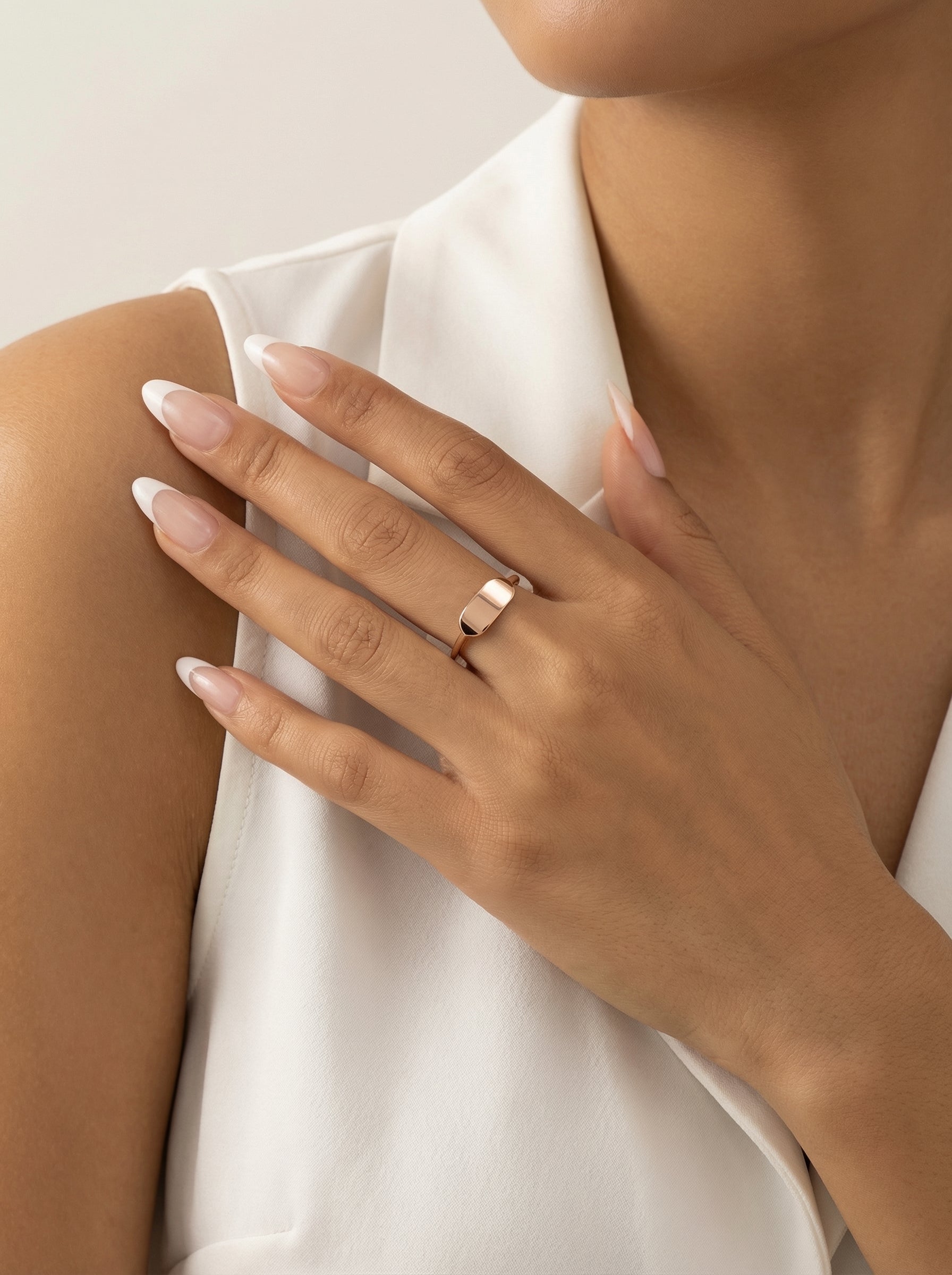 Personalizuojamas auksinis žiedas su graviravimo plokštele PMZ165