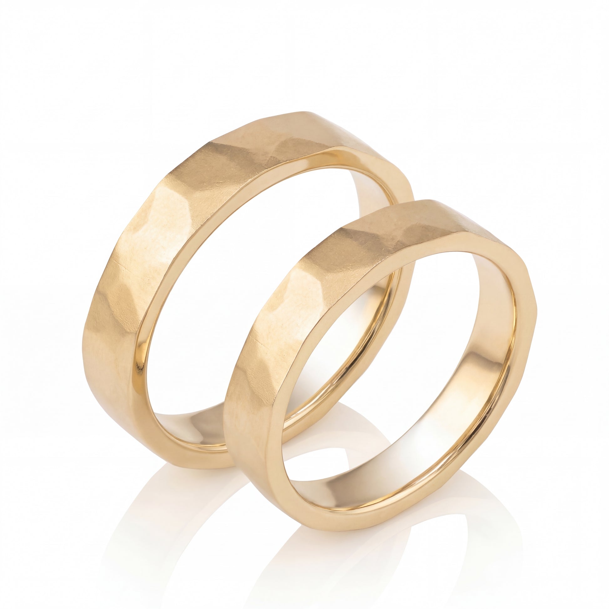 Elegantiški vestuviniai žiedai iš geltono aukso – subtilus klasikos ir modernumo derinys. Šių žiedų dizainas išsiskiria švelniu satininio matinio paviršiaus efektu.