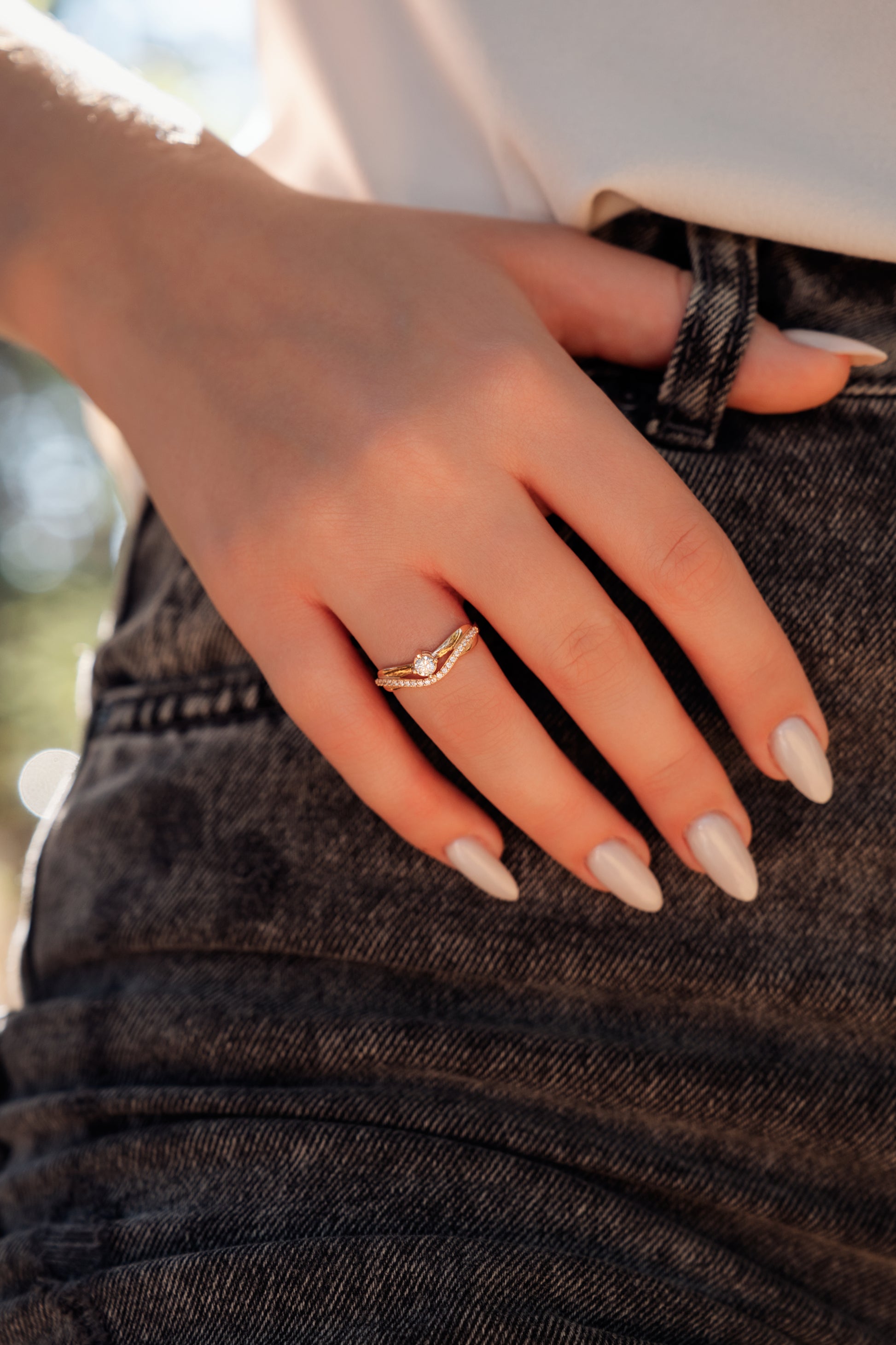 - Spalva: raudonas; geltonas arba baltas auksas;